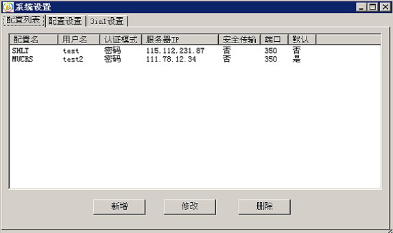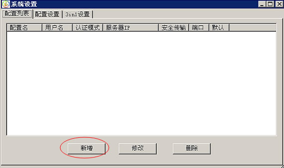 2.在配置列表中,点击"新增"按钮。会切换到"配置设置"界面。
